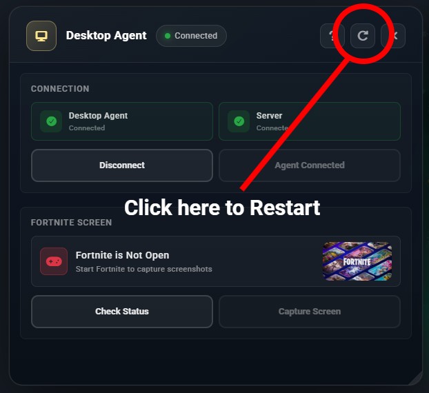 Additionally, you can restart the agent on windows & the website to ensure both are working.