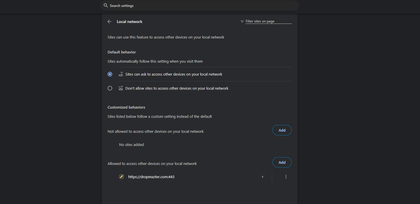 - Edge - edge://settings/privacy/sitePermissions/allPermissions/localNetwork