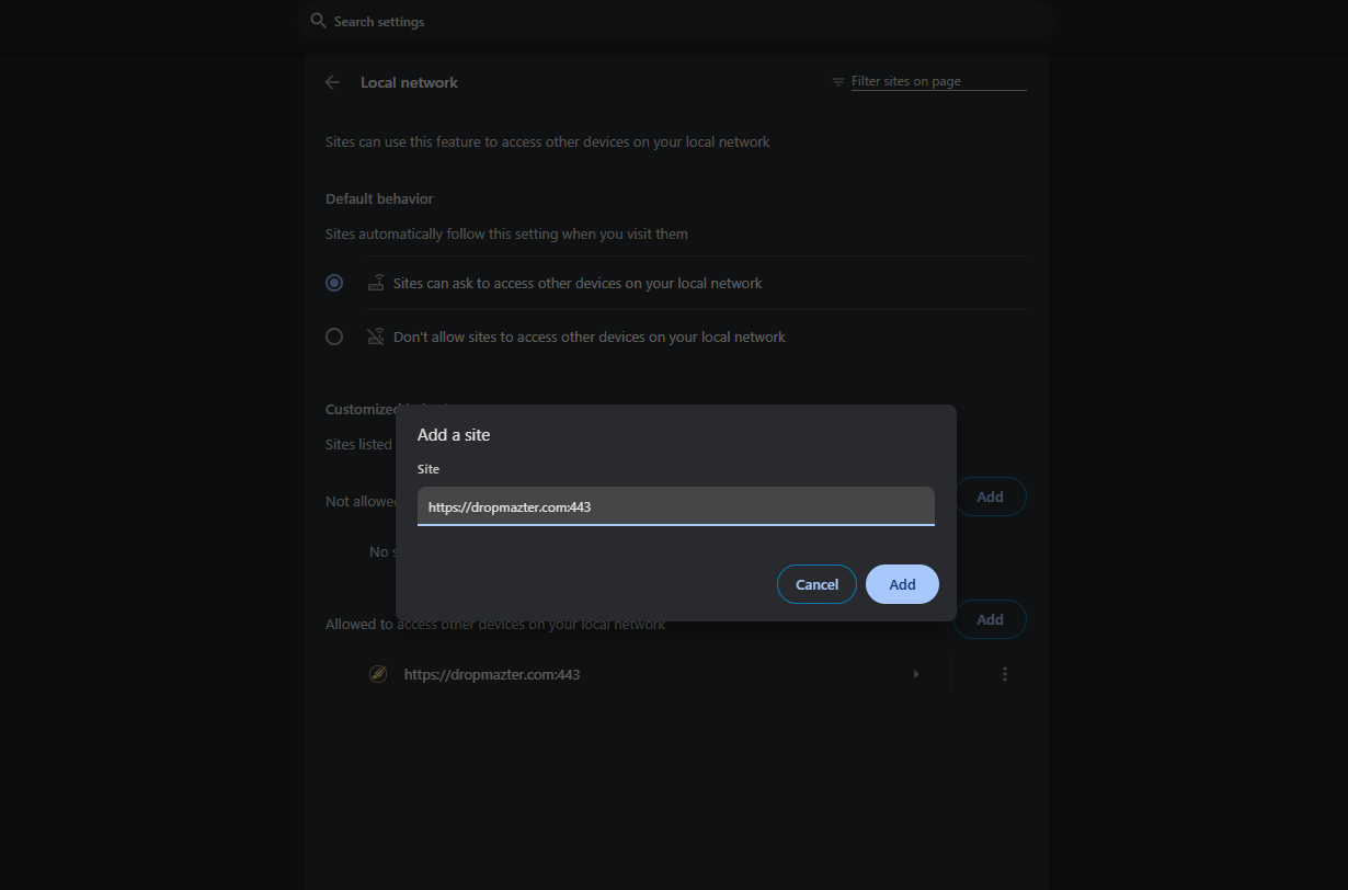 Lastly, this may be an issue with your Browser. Drop Mazter Agent requires localhost to be enabled so our servers can communicate with the website and app at the same time, and sometimes localhost is automatically disabled or manually disabled by the user.