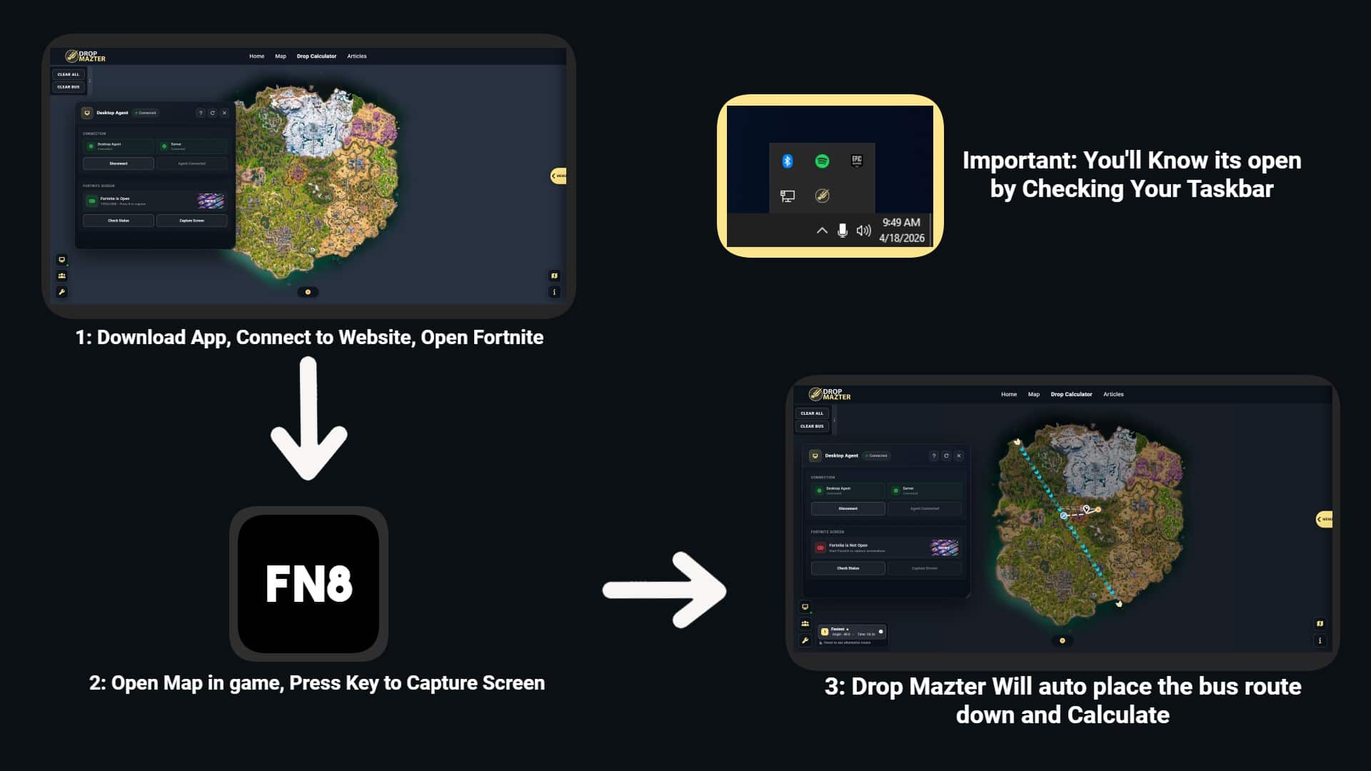 Simply Download Drop Mazter Agent via the Microsoft store* (or direct link if MS Store is not working/disabled), set up a keybind to capture your screen, and jump in game to try it out!